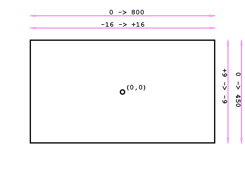 The original book I learned this from which is shown in the previous chapter used a horizontal scale of 800 units and a vertical scale of 450 units, and began from the origin at the top left corner of the page.
